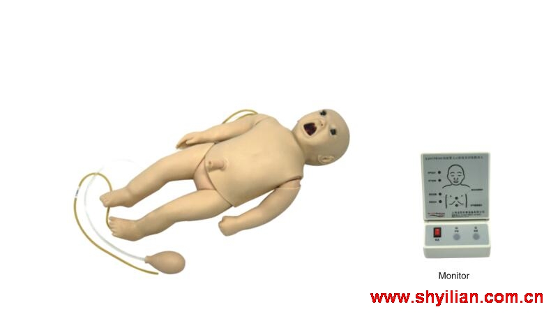 The system provides comprehensive neonatal ACLS emergency skills training. The manikin is designed according to neonatal anatomic structure and physiological characters, made of imported environmental material. This simple and practical ACLS training tool provides CPR, tracheal intubation, real and simulative defibrillation and pacing, ECG study and assessment and other emergency ways, which applies to major hospitals, medical schools and sanitation schools simulative emergency operation.