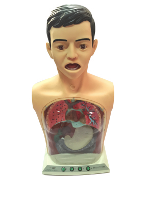 模型為標準和成人上半身,胸腔為解剖結構標志,透明和胸殼可直觀演示操作功能