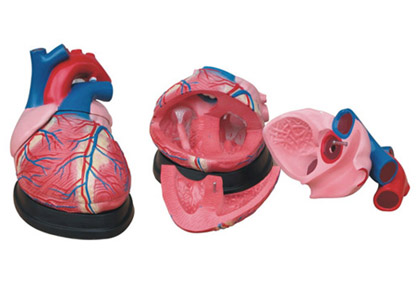 本模型適用于普通中學、中等專業學校講解生理解剖課時作直觀教具用,主要使學生了解心臟外部形態和內部結構,以及與心臟有關的大血管,進一步了解體循環和肺循環的途徑。用PVC制成,分成3件,4倍放大。尺寸: 25x23x23CM。