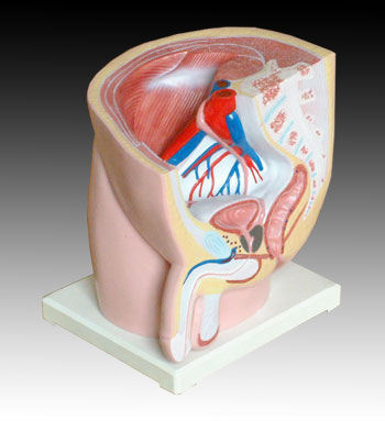 本模型作矢狀切面,顯示男性生殖器官和膀胱、直腸在骨盆中的正常位置。安放于塑料座上。包裝: 57x46x62CM, 8件/箱, 20KG