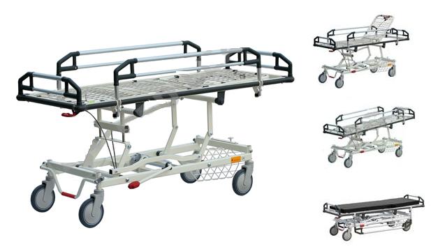 該搶救床主要材料采用鋼和塑料制成;該搶救床高度均由腳踩控制,后背角度由氣彈簧調節;該床設有中控鎖裝置,帶有萬向輪,在使用時便于鎖止可靠,適用于醫院轉移病人之用;該床具有堅固耐用、防腐、易消毒之特點;