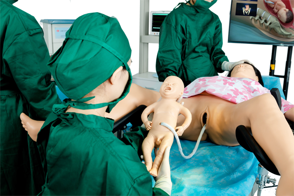 產品包含模擬產婦、模擬胎兒、模擬臍帶和胎盤、系統操作軟件及相關配套設備、器材等。模擬產婦模型配合臨床思維訓練軟件,以現實和虛擬相結合,設計了正常分娩、異常分娩、母嬰護理等教學內容和考核體系,符合住院醫師培訓的產科臨床能力培養要求,解決了產科臨床實訓標準操作重點、難點和細節。